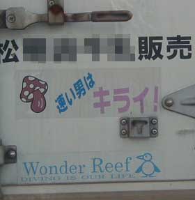 ******** 「きのこ」 『早い男』ではなく『速い男』です。 スピードの出し過ぎに注意。 しかし、なぜ『きのこ』!?(^^; (撮影地:静岡県浜松市) ********